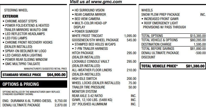 - Denali Preferred Equipment Group includes standard equipment