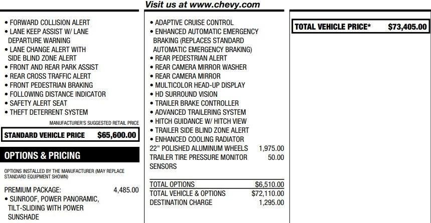 - Premier and High Country models also include Trailer Side Blind Zone Alert1